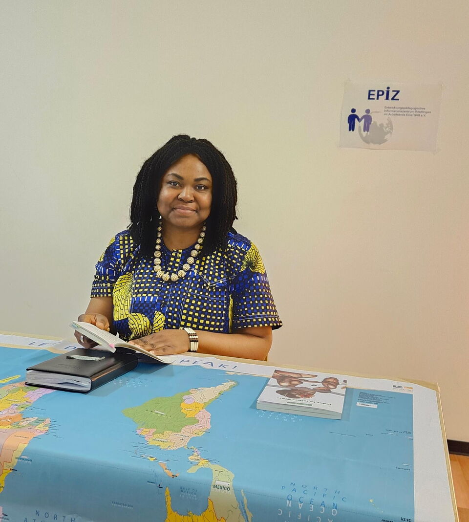 Francine Feuné machte am 17.03. den Anfang. Im Globalen Klassenzimmer des EPiZ kamen wir zusammen, um ihr zu lauschen, wie sie aus ihrem Buch „Meine Familie, mein Leben“, las. Das autobiographische Buch erzählt über die Anfänge des Paares, wie sie sich im Gymnasium in Kamerun zum ersten Mal sahen, bis hin zum Plan, in Deutschland eine Großfamilie zu gründen und über die Auf- und Abs des Familienalltags und der Entstehung des lang gehegten Traumes einer großen Familie. Die Themen rund um die Familienplanung kamen auf, künstliche Befruchtung, die Behandelungen in den Kliniken und ein Tabuthema, Totgeburt. Es war befreiend, in dem Kontext darüber zu sprechen und zu merken: Egal, woher wir kommen, Familienplanung betrifft Frauen besonders und es gibt immer noch Themen, die in unserer Gesellschaft ihren Platz finden sollten. Außerdem erzählte Feuné von einem ihrer Söhne, der besonderen Unterstützungsbedarf hat. Ihm hat sie ein weiteres Buch gewidmet, das bald erscheinen soll. Ihre freiherzige Art machte es einfach, über Themen zu sprechen, z.B. den Alltag in ihrer Großfamilie und Bürden aber auch Wärme und Verbundenheit, die dadurch entstehen. Vielen Dank für den Austausch, der kulturelle Grenzen überwunden und die Gemeinsamkeiten und Schwierigkeiten für weiblichen Personen in den Vordergrund gestellt hat.